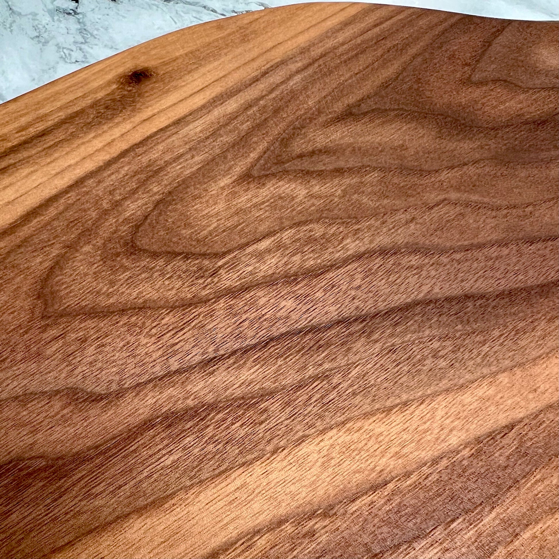 Serve up a stunning presentation with this walnut live edge charcuterie board! Its unique shape and natural grain will add rustic elegance to any occasion. Use it to present cheeses, charcuterie, bread, and more in style.